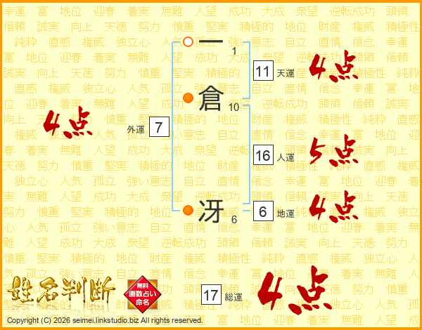 一倉冴さんの総運は17画の4点!