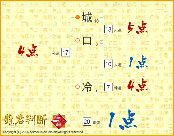 城口冷さんの天運は13画の5点!