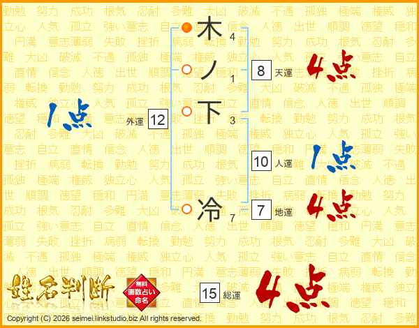 木ノ下冷さんの総運は15画の4点!