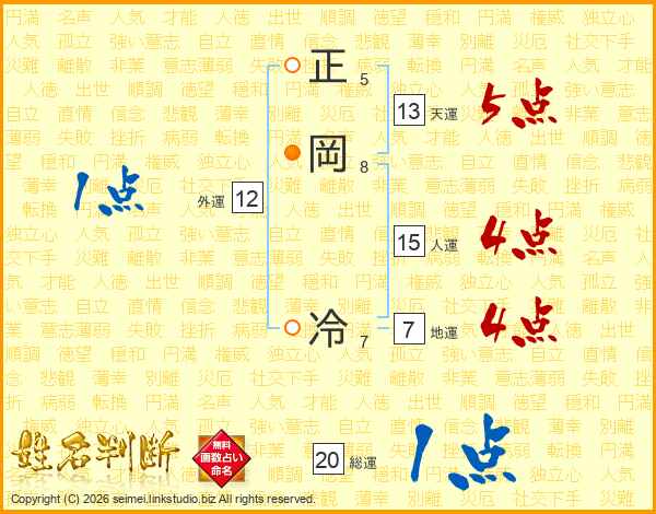 正岡冷さんの天運は13画の5点!