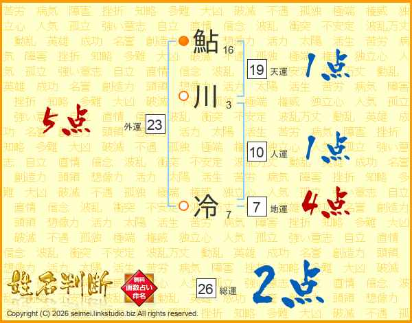 鮎川冷さんの総運は26画の2点!