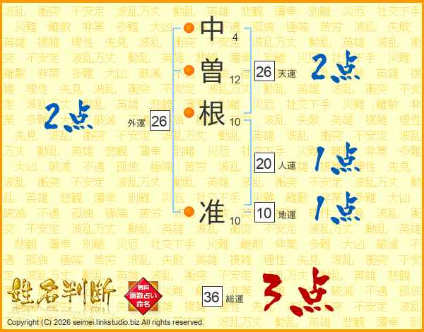 中曽根准さんの天運は26画の2点!