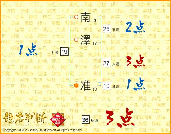 南澤准さんの天運は26画の2点!