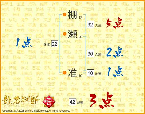 棚瀬准さんの天運は32画の5点!