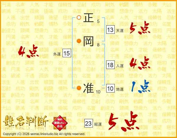 正岡准さんの総運は23画の5点!