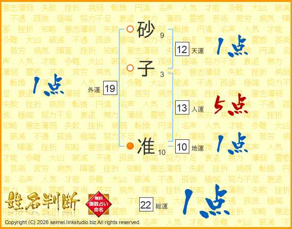 砂(9画)子(3画) 准(10画)