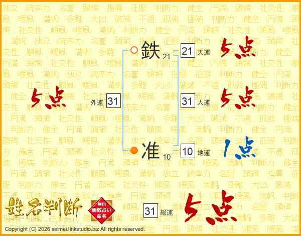 鉄准さんの総運は31画の5点!