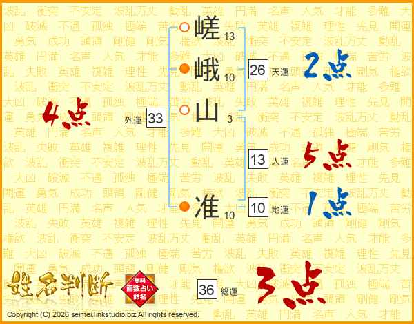 嵯峨山准さんの天運は26画の2点!