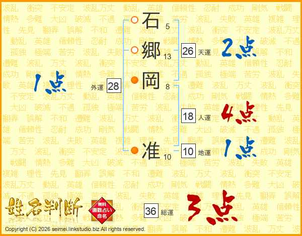 石郷岡准さんの天運は26画の2点!