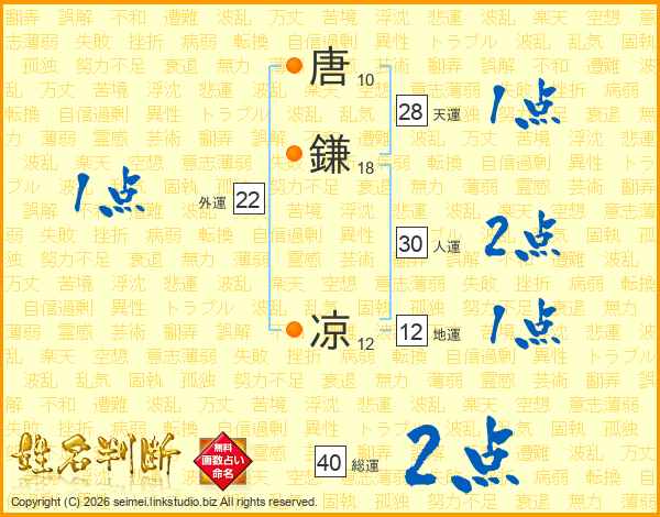 唐鎌凉さんの総運は40画の2点!