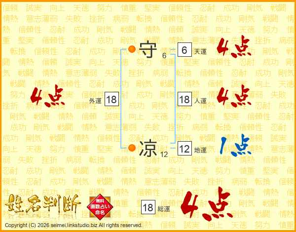 守凉さんの総運は18画の4点!