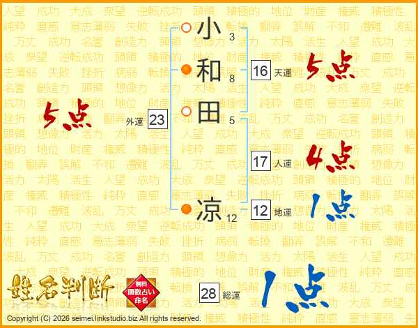 小和田凉さんの総運は28画の1点!