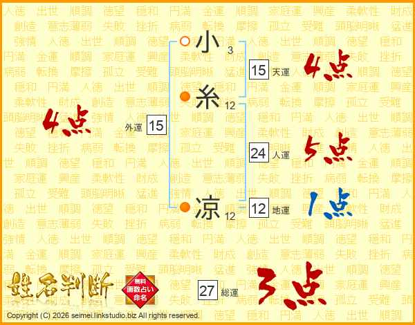 小糸凉さんの外運は15画の4点!