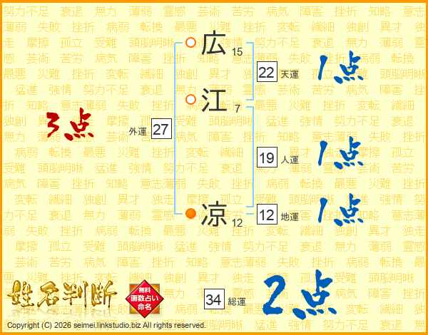 広江凉さんの総運は34画の2点!
