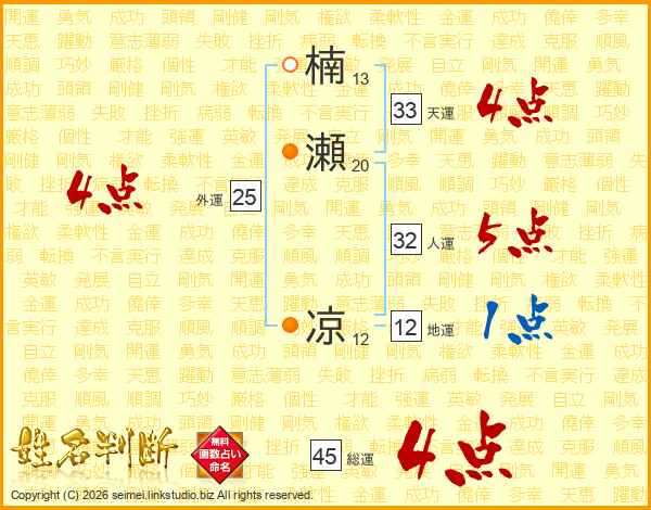楠瀬凉さんの総運は45画の4点!