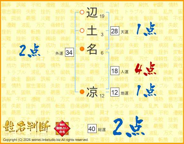 辺(19画)土(3画)名(6画) 凉(12画)