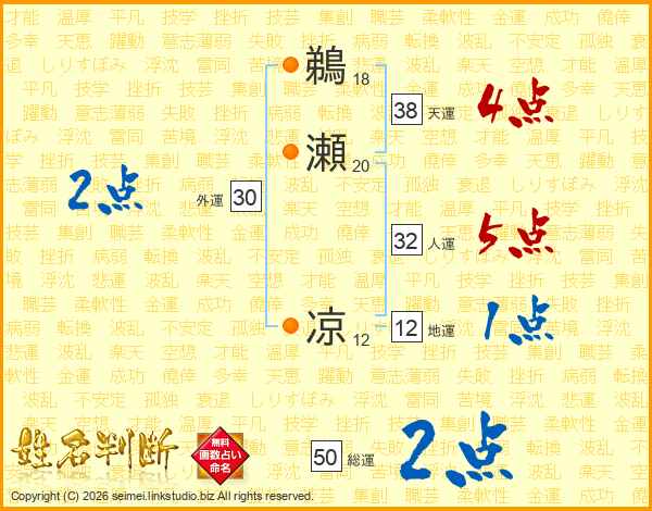 鵜瀬凉さんの天運は38画の4点!