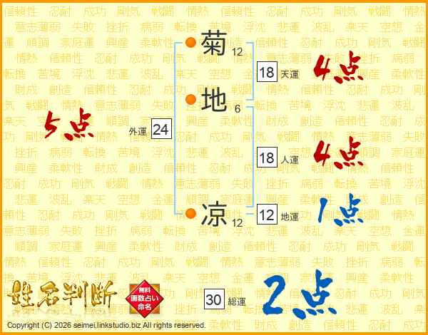 菊地凉さんの天運は18画の4点