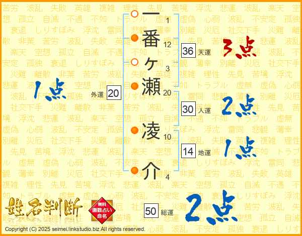 一番ヶ瀬凌介さんの天運は36画の3点!