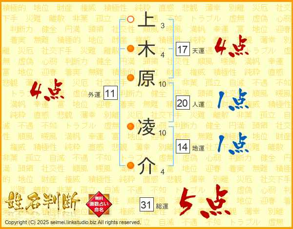 上木原凌介さんの総運は31画の5点!