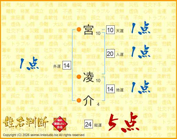 宮(10画) 凌(10画)介(4画)