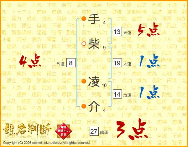 手柴凌介さんの総運は27画の3点!
