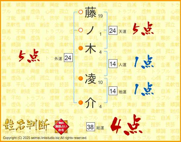 藤(19画)ノ(1画)木(4画) 凌(10画)介(4画)