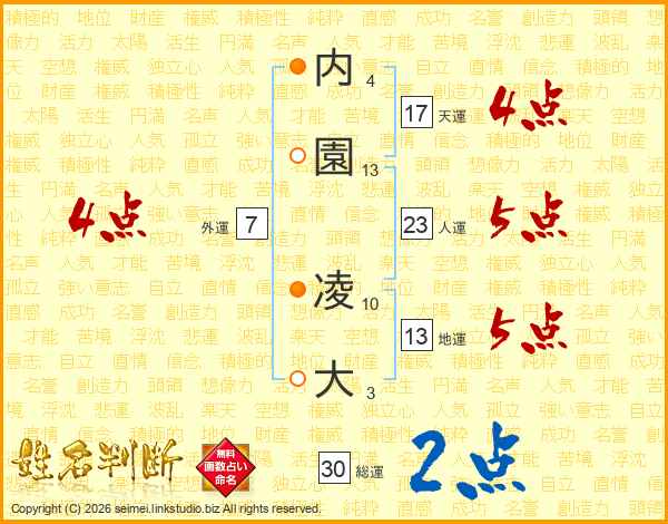 内園凌大さんの天運は17画の4点!