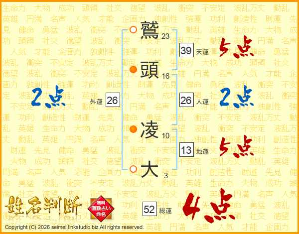 鷲頭凌大さんの総運は52画の4点!