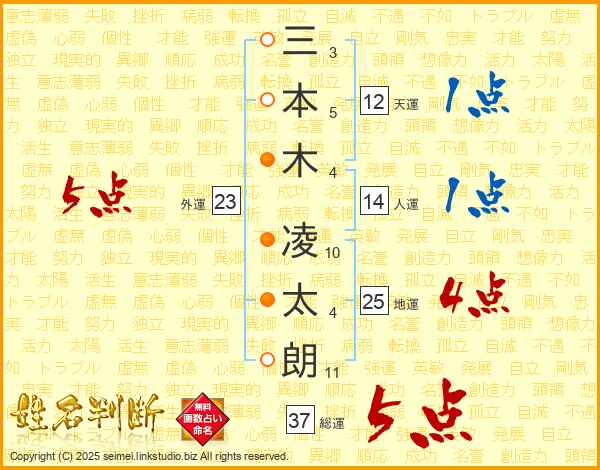三本木凌太朗さんの総運は37画の5点!