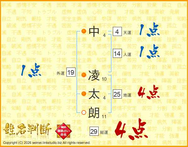 中凌太朗さんの地運は25画の4点!
