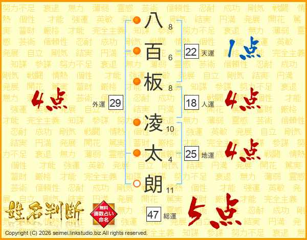 八百板凌太朗さんの総運は47画の5点!