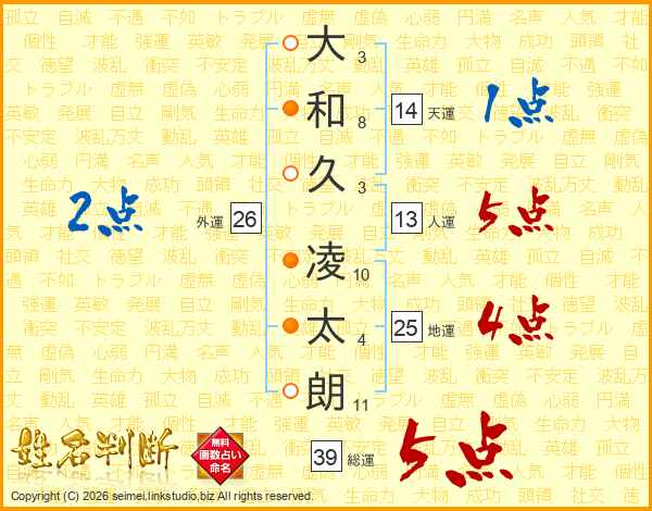 大和久凌太朗さんの総運は39画の5点!