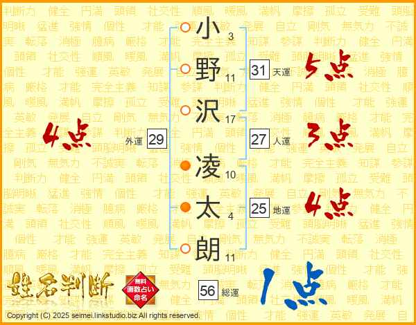小野沢凌太朗さんの地運は25画の4点!