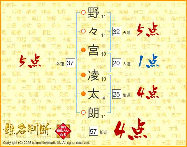 野々宮凌太朗さんの総運は57画の4点!
