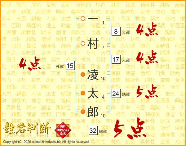 一村凌太郎さんの総運は32画の5点!