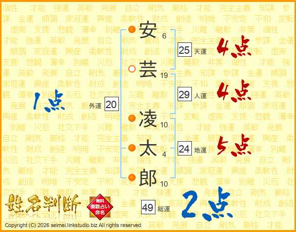 安芸凌太郎さんの総運は49画の2点!