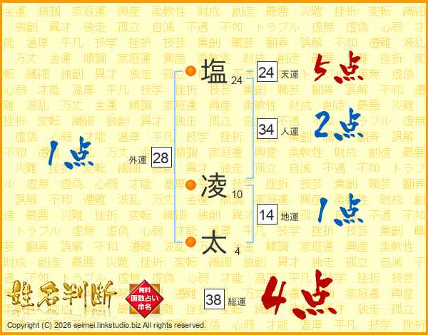 塩凌太さんの総運は38画の4点!