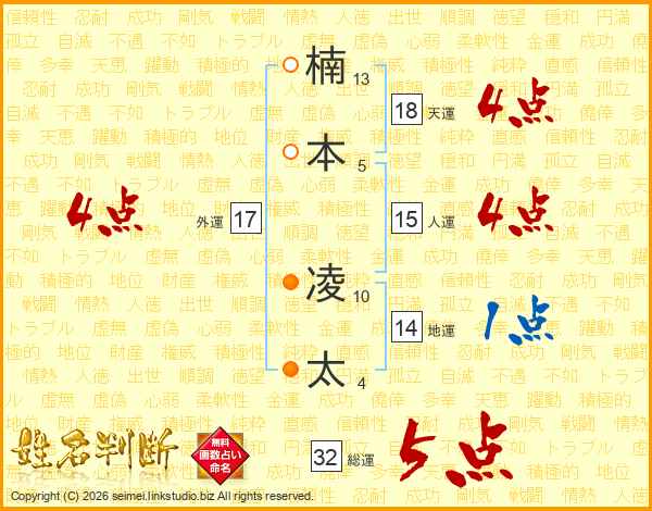 楠本凌太さんの天運は18画の4点!