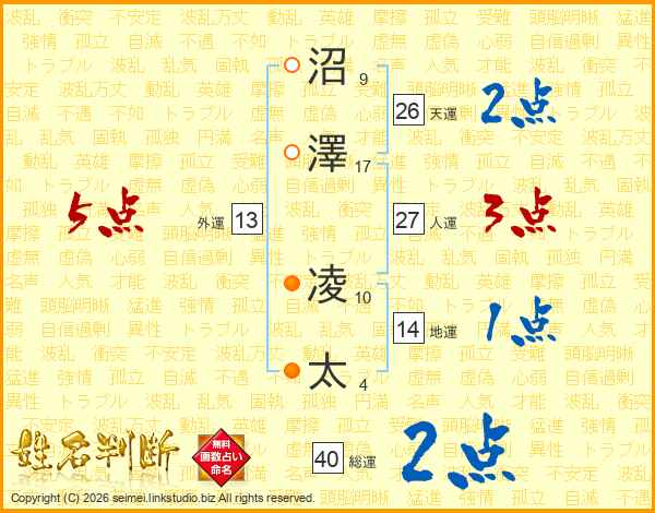 沼澤凌太さんの天運は26画の2点!