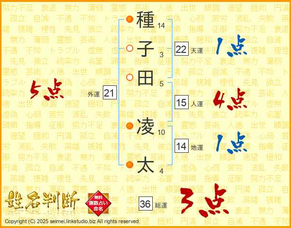 種(14画)子(3画)田(5画) 凌(10画)太(4画)