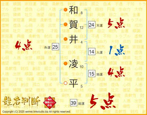 和(8画)賀(12画)井(4画) 凌(10画)平(5画)