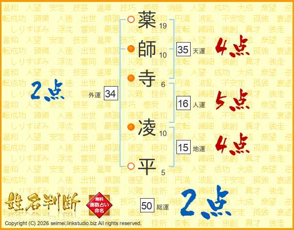 薬師寺凌平さんの総運は50画の2点!
