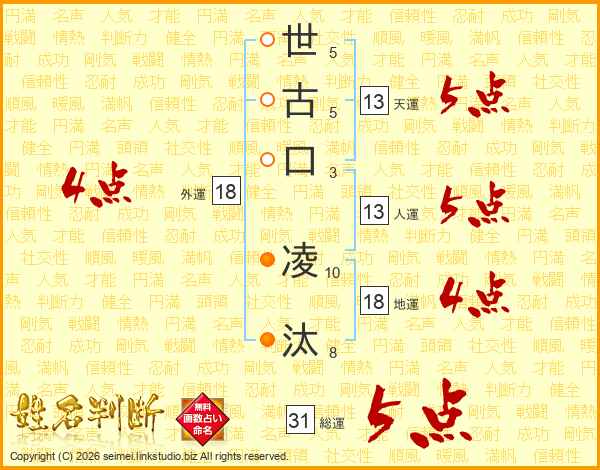 世古口凌汰さんの総運は31画の5点!