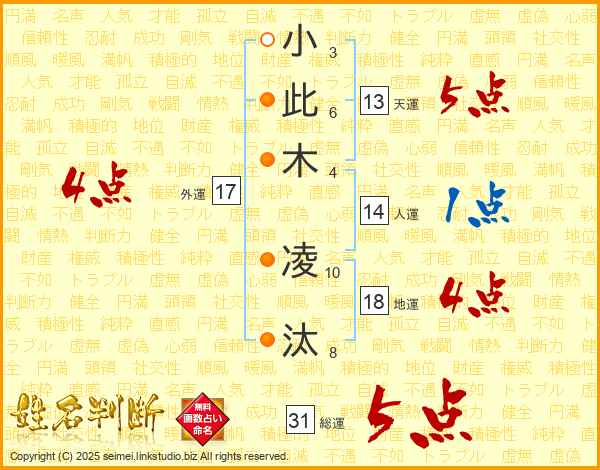 小(3画)此(6画)木(4画) 凌(10画)汰(8画)