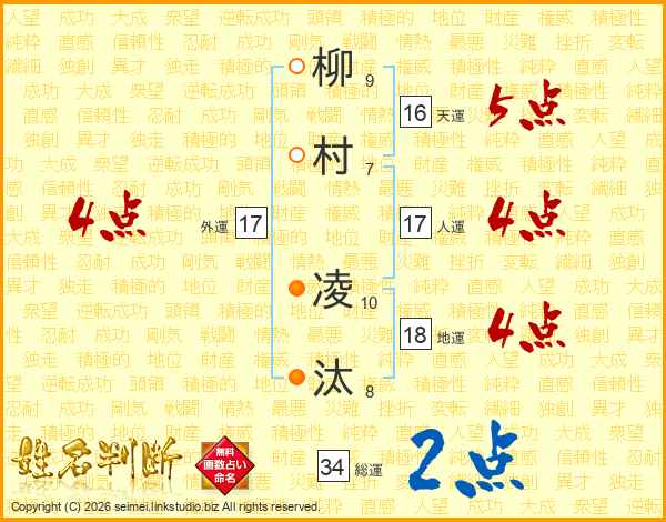 柳村凌汰さんの総運は34画の2点!