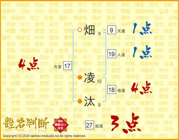 畑(9画) 凌(10画)汰(8画)