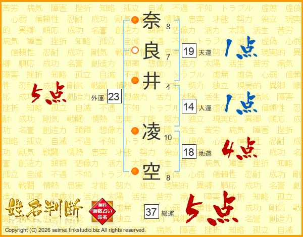 奈(8画)良(7画)井(4画) 凌(10画)空(8画)