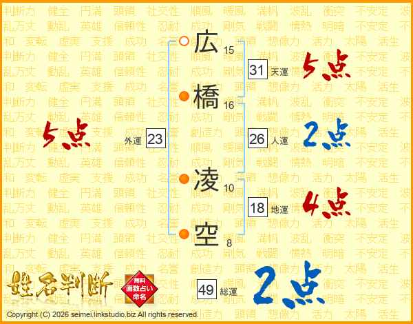 広橋凌空さんの外運は23画の5点!