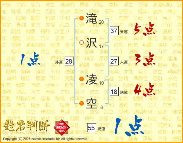 滝沢凌空さんの天運は37画の5点!